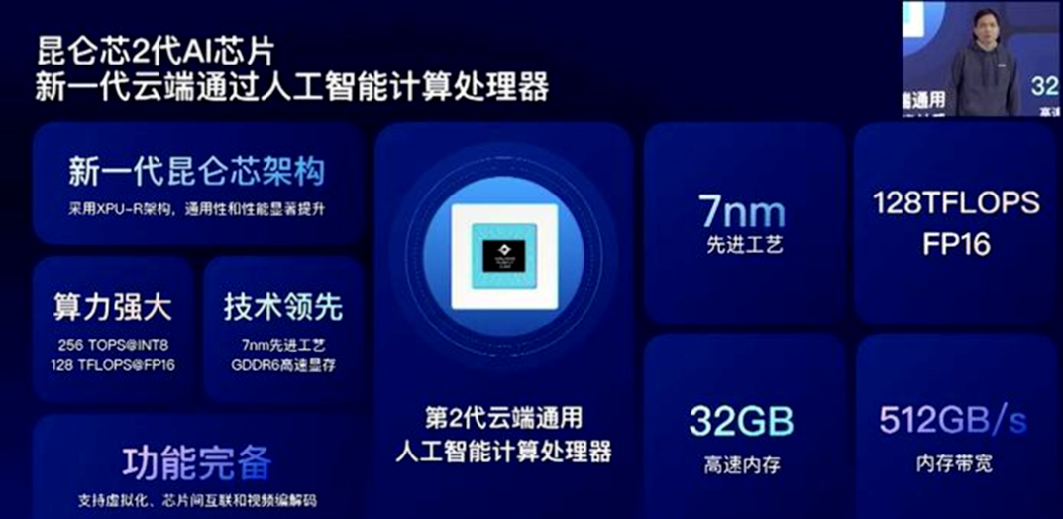 第一代昆侖芯于2020年開始大規(guī)模部署,采用14納米工藝和先進的HBM內(nèi)存、2.5D封裝技術。這款芯片剛量產(chǎn)就在百度數(shù)據(jù)中心里部署了超過2萬片。一年后,第二代昆侖芯量產(chǎn),采用了更先進的7納米工藝和XPU第二代的架構。同時,它也是業(yè)界第一顆采用GDDR6高速顯存技術的AI芯片。目前,昆侖芯科技正在研發(fā)更先進的第三代AI芯片,針對高階自動駕駛系統(tǒng),未來可能會推出定制的車規(guī)高性能SoC(系統(tǒng)級芯片)。
