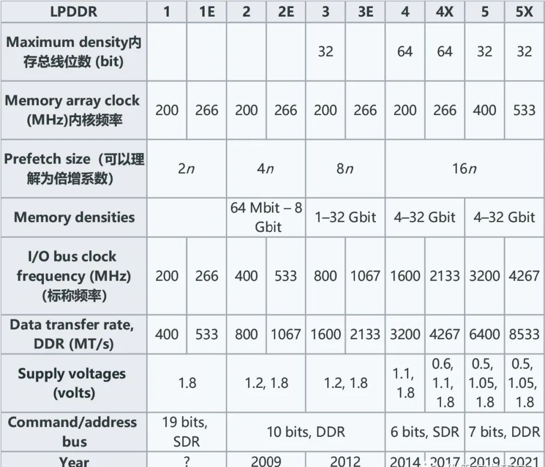 歷代LPDDR的參數(shù)